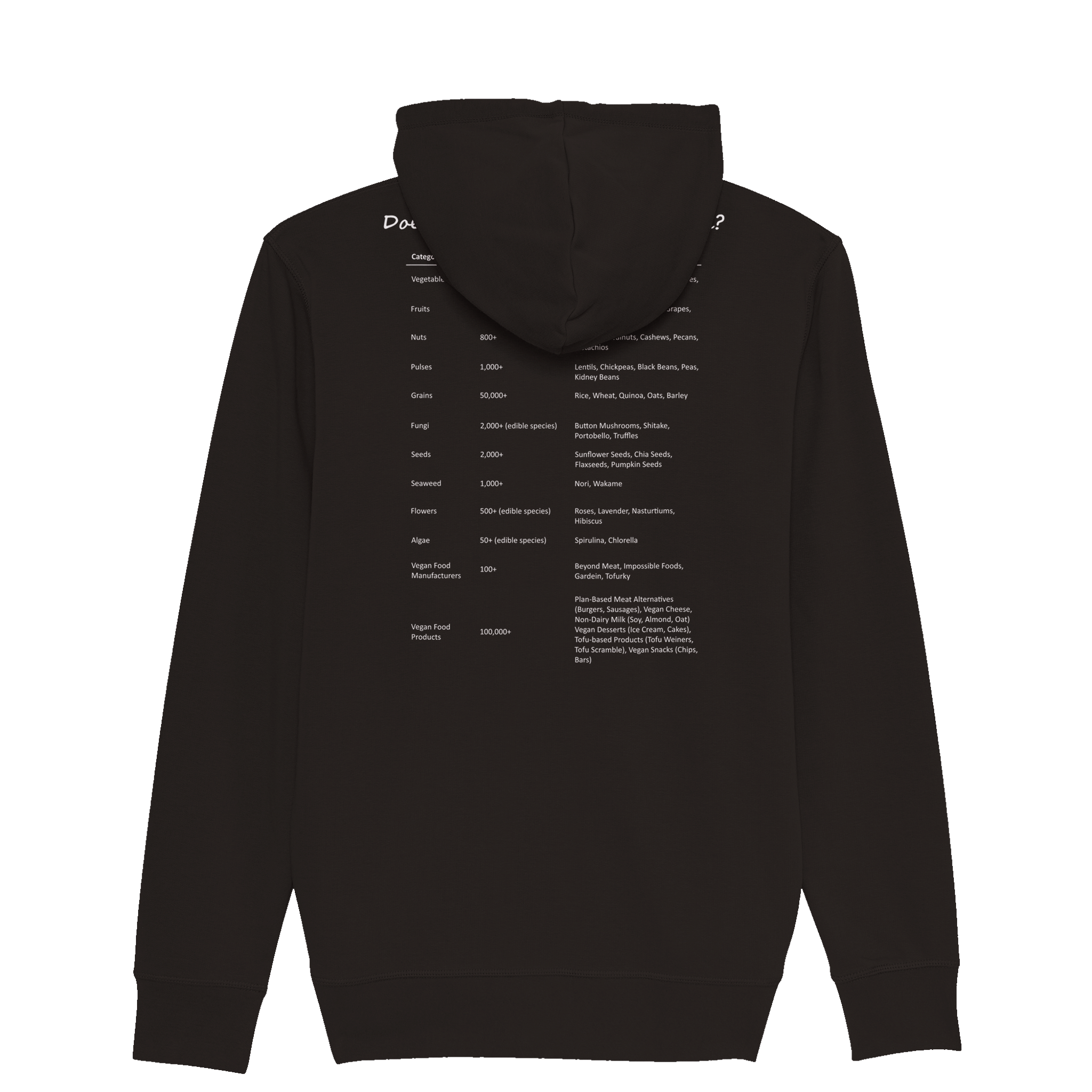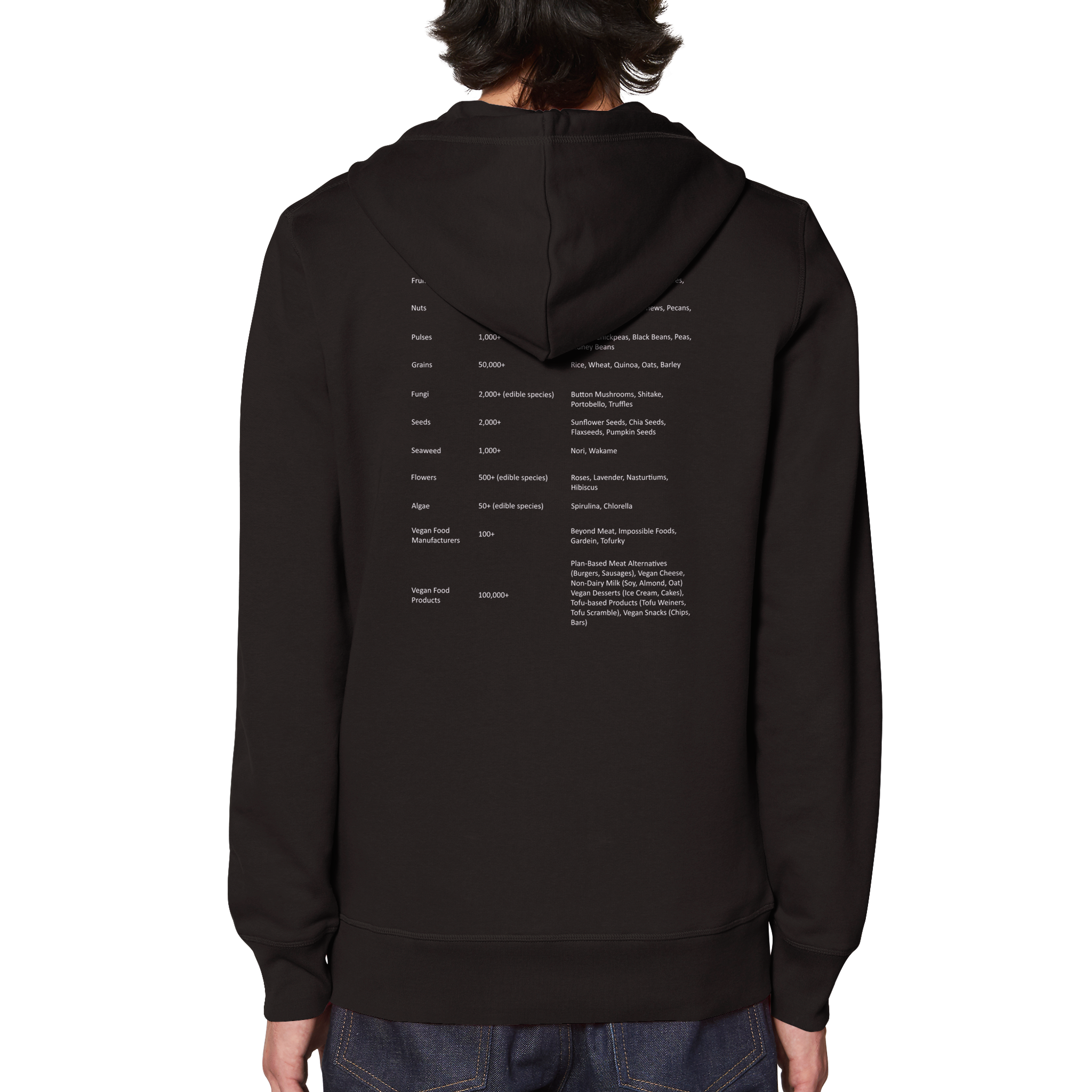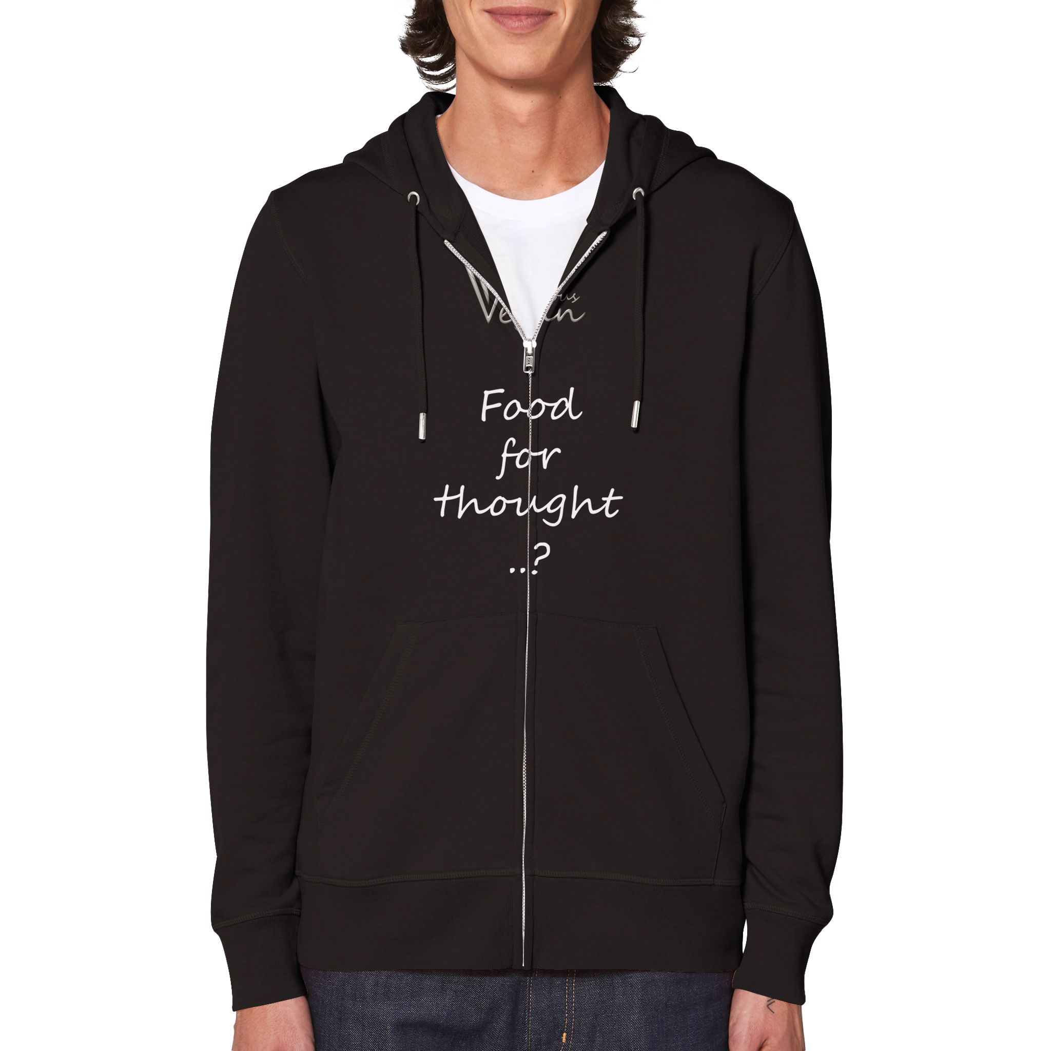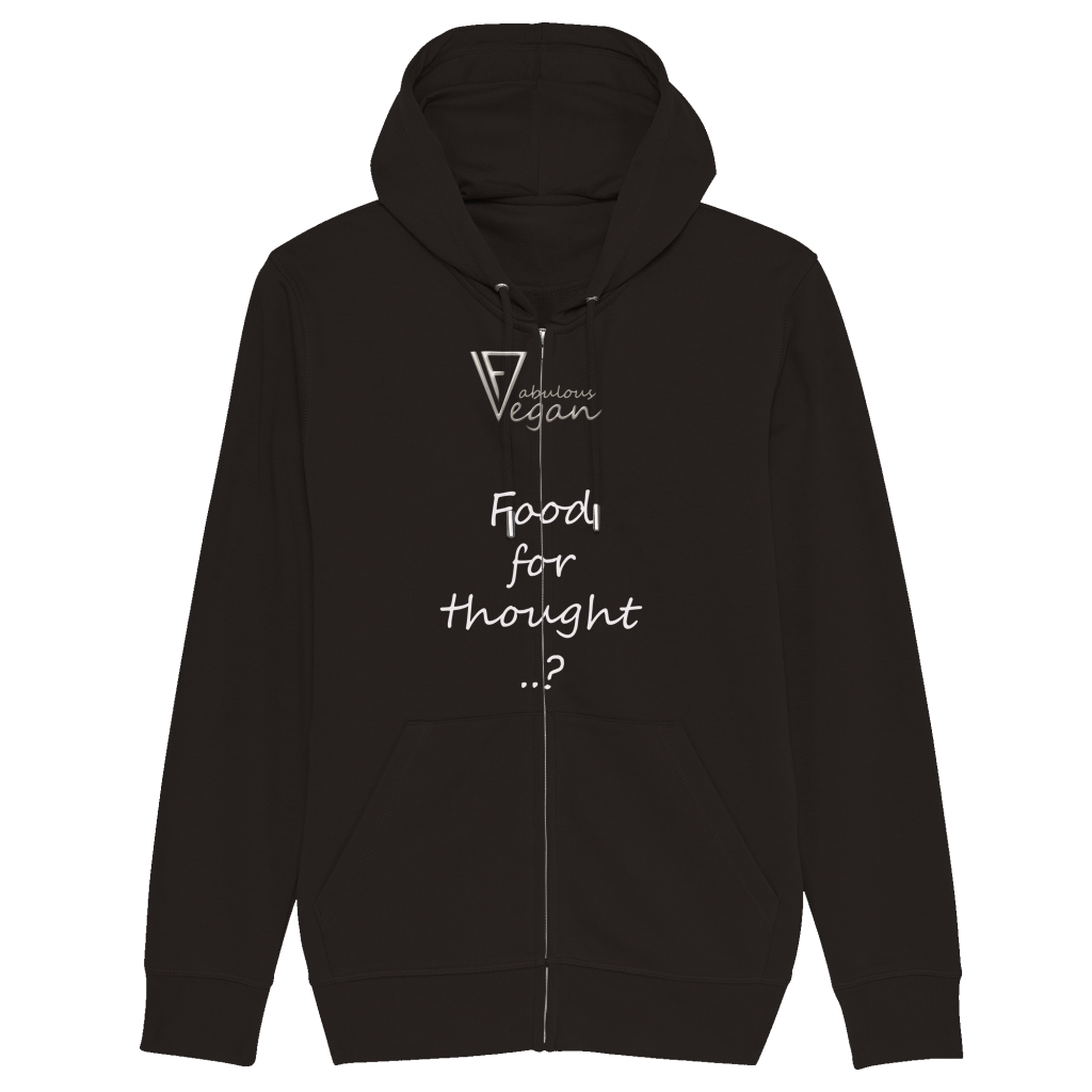 You can never go wrong with an essential zip hoodie. Great for chilly days, it’s both stylish and comfortable. This one has the “Food for thought” slogan on the front and the “Does this answer your question?” question and food type examples on the back.